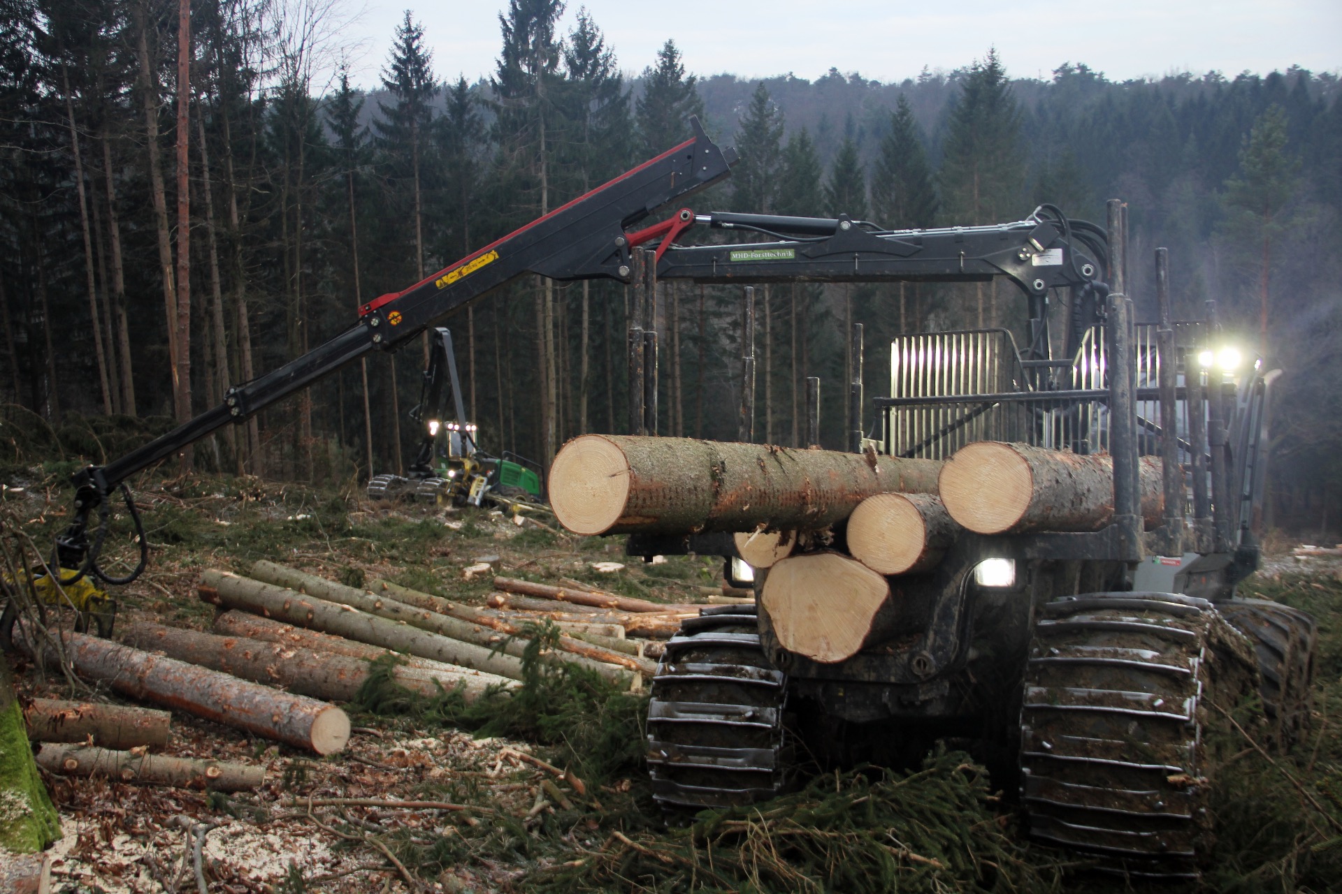 Mit unseren Forwardern können wir sowohl Kurzholz wie auch Langholz rücken.